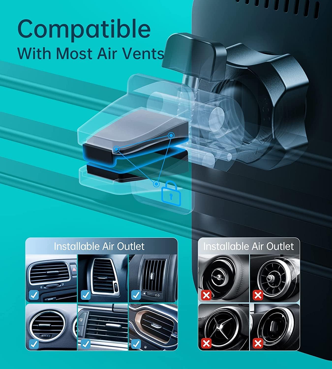 【360° mångsidig enhandsmanövrering】: Med den 360° flexibla rotationskulan kan denna magnetiska hållare växlas i alla vinklar för enkel navigering. Slå på telefonen till en perfekt vinkel och njut av en mer avslappnad och säker åktur på bara 1 s. Hållarbasen sitter stadigt på bilens ventilationsöppning oavsett hur mycket du vänder eller vänder.