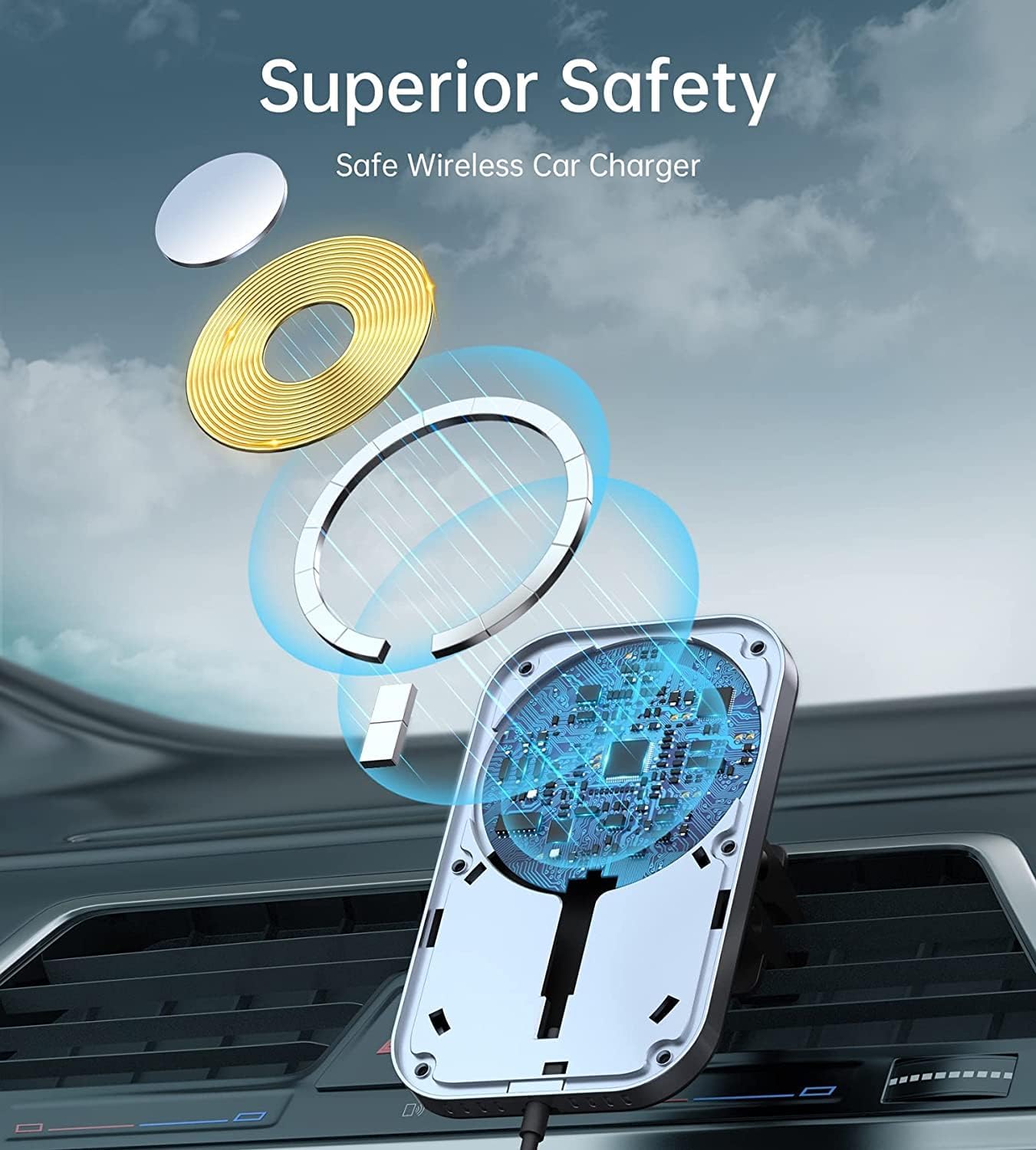 15W Magnetic Wireless Mobile Phone Holder Car Charger
