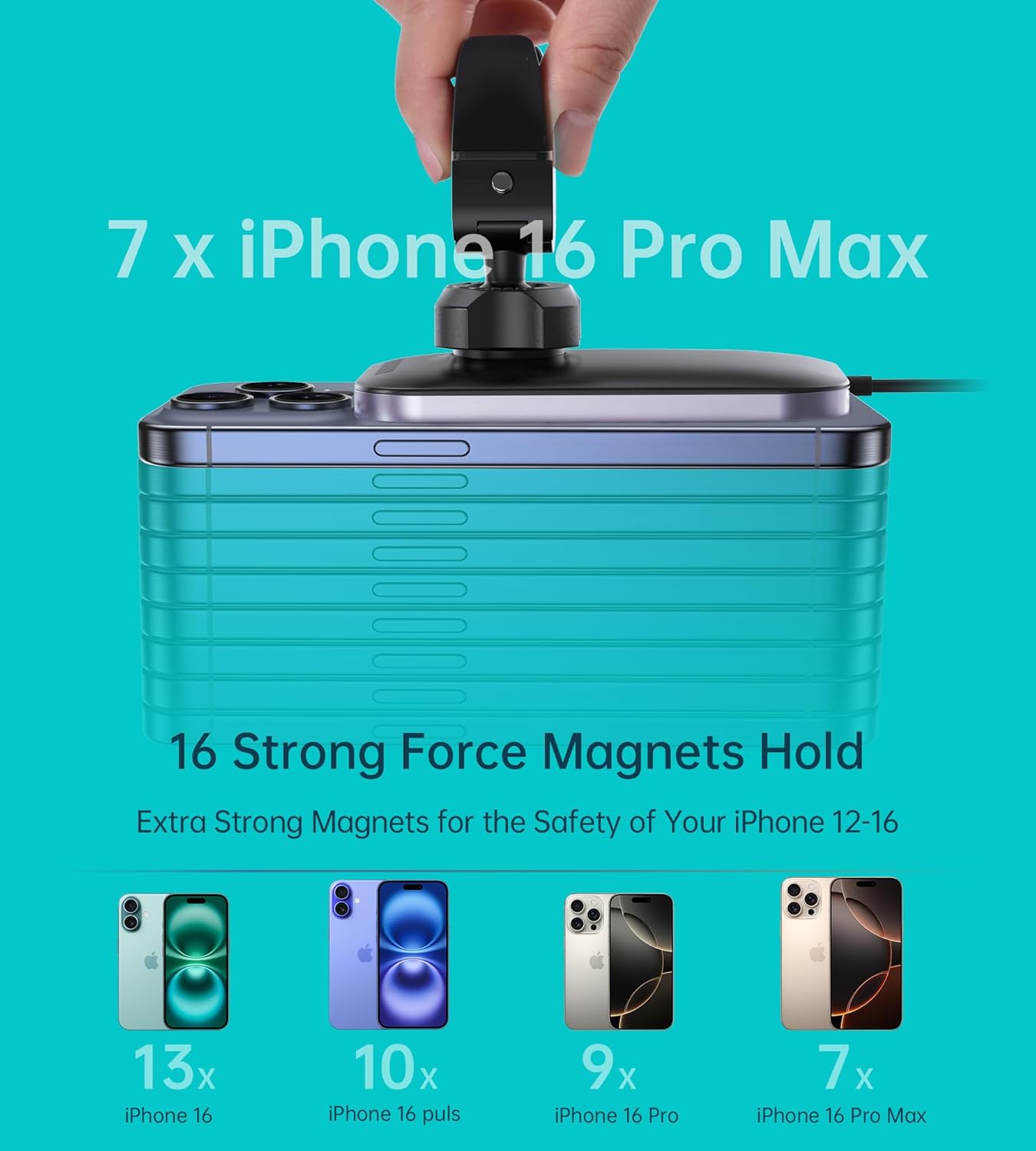 【Specialutvecklad för iPhone 16/15/14/13/12 Series】: Den magnetiska magasinssäkra telefonhållarens laddare är speciellt designad för din iPhone 16/16Plus/16Pro/16ProMax/15/15Plus/15Pro/15ProMax/14/14 Plus/14 Pro Max/Mini/32 Pro Max/14 Pro Max/Mini Mini / 12 Pro Max Mini och magnetiska/magsäkra väskor tillverkade