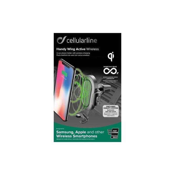 Den största fördelen med denna redan perfekta bilhållare är att CellularLine Handy Wing Active Wireless är utrustad med trådlös laddning.